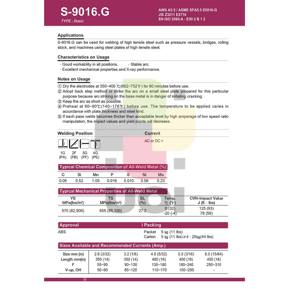 ลวดเชื่อมไฟฟ้าเหล็กทนแรงดึงสูง HYUNDAI S-9016.G (E9016-G)